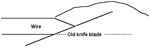 Having trouble forging those wire heads correctly? Try laying your wire on your anvil and place the square back edge of an old knife blade at an angle on the wire and hammer it. The back edge of the knife blade will flatten the wire at an angle....reverse it and do the same angle from the other side and you have a perfect forge job that you then finish filing to shape.